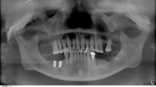 5年前邹女士下颌左右两边的磨牙出现缺损问题,但只修复左边牙齿,做了烤瓷牙。时间久了致使牙根断裂。