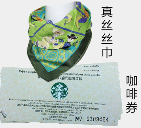 现场还有星巴克咖啡券、太湖雪真丝丝巾等礼品